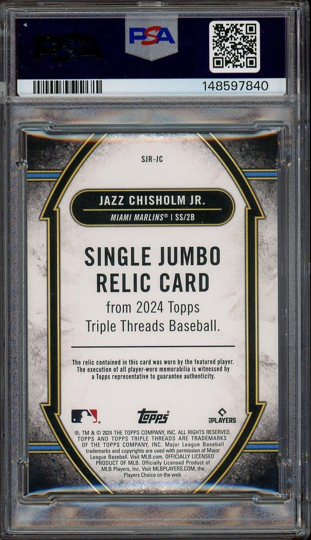 Jazz Chisholm 2024 Topps Triple Threads Jumbo Single Relic Gold Card /9 PSA 6
