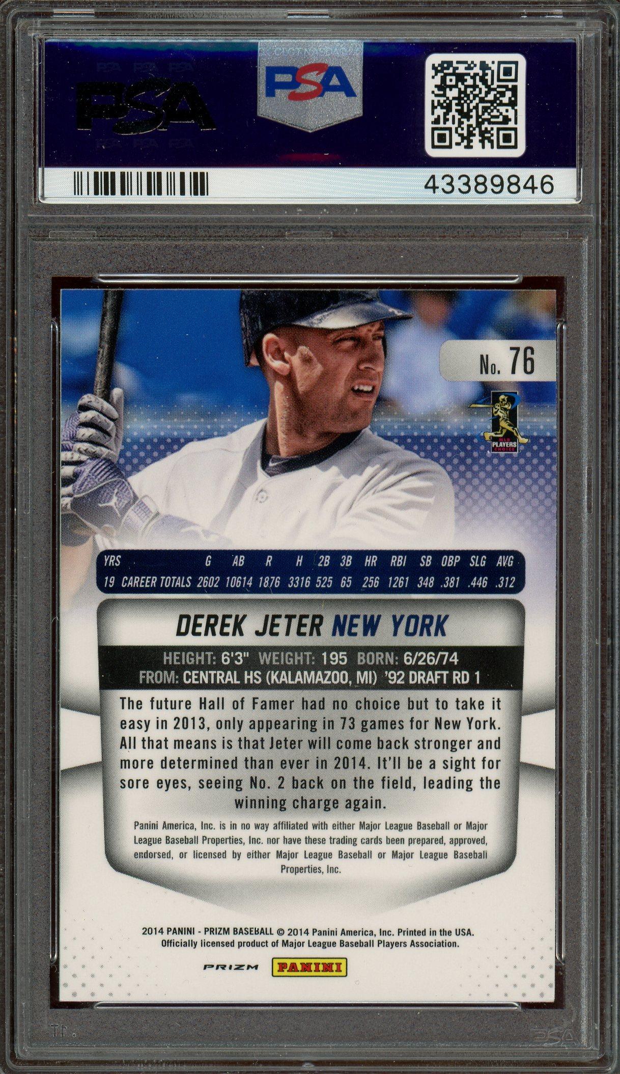 Derek Jeter 2014 Panini Prizm Silver Prizm Card #76 PSA Gem Mint 10 POP 11!