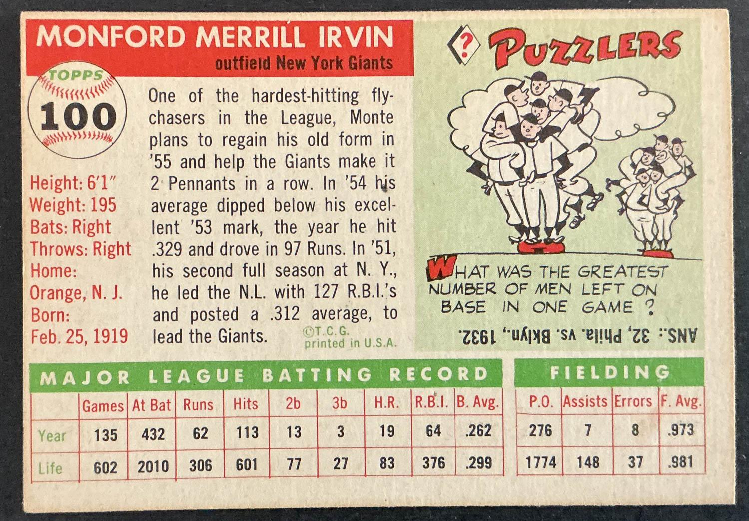 Monte Irvin 1955 Topps Card #100