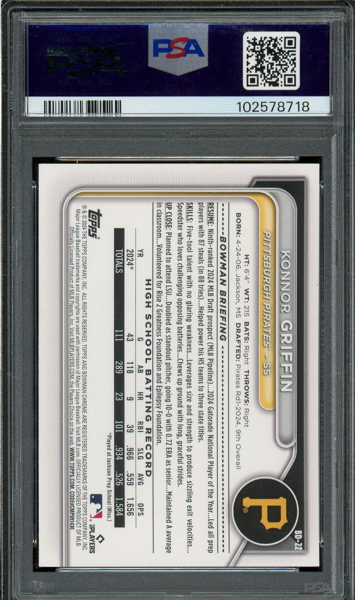 Konnor Griffin 2024 Bowman Draft Gold 1st Bowman Card /50 PSA Gem Mint 10 POP 4!
