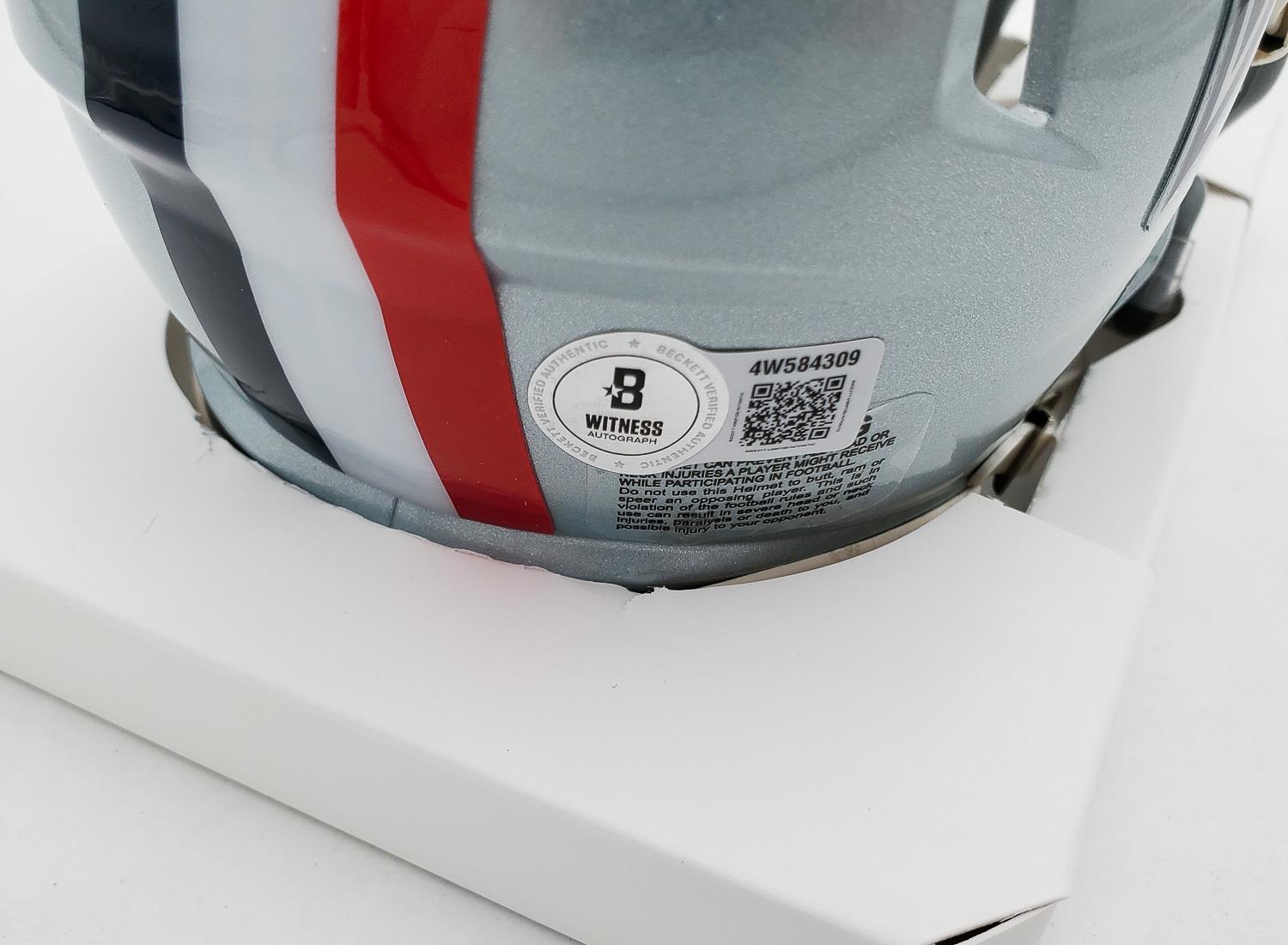 This autographed mini helmet has been personally hand-signed by Drew Pearson of the Dallas Cowboys. This autograph is certified by Beckett Authentication Services (BAS) Witness Certification. That means that a Beckett representative was present when this item was signed. It comes with the numbered authentication hologram with a QR code that verifies the authentication on the Beckett website.