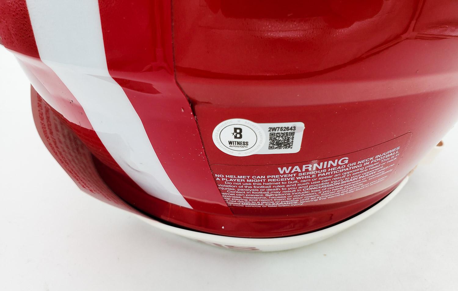 This autographed full size Riddell Authentic Speed helmet has been personally hand-signed by Fred Warner of the San Francisco 49ers. This autograph is certified by Beckett Authentication Services (BAS) Witness Certification. That means that a Beckett representative was present when this item was signed. It comes with the numbered authentication hologram with a QR code that verifies the authentication on the Beckett website.