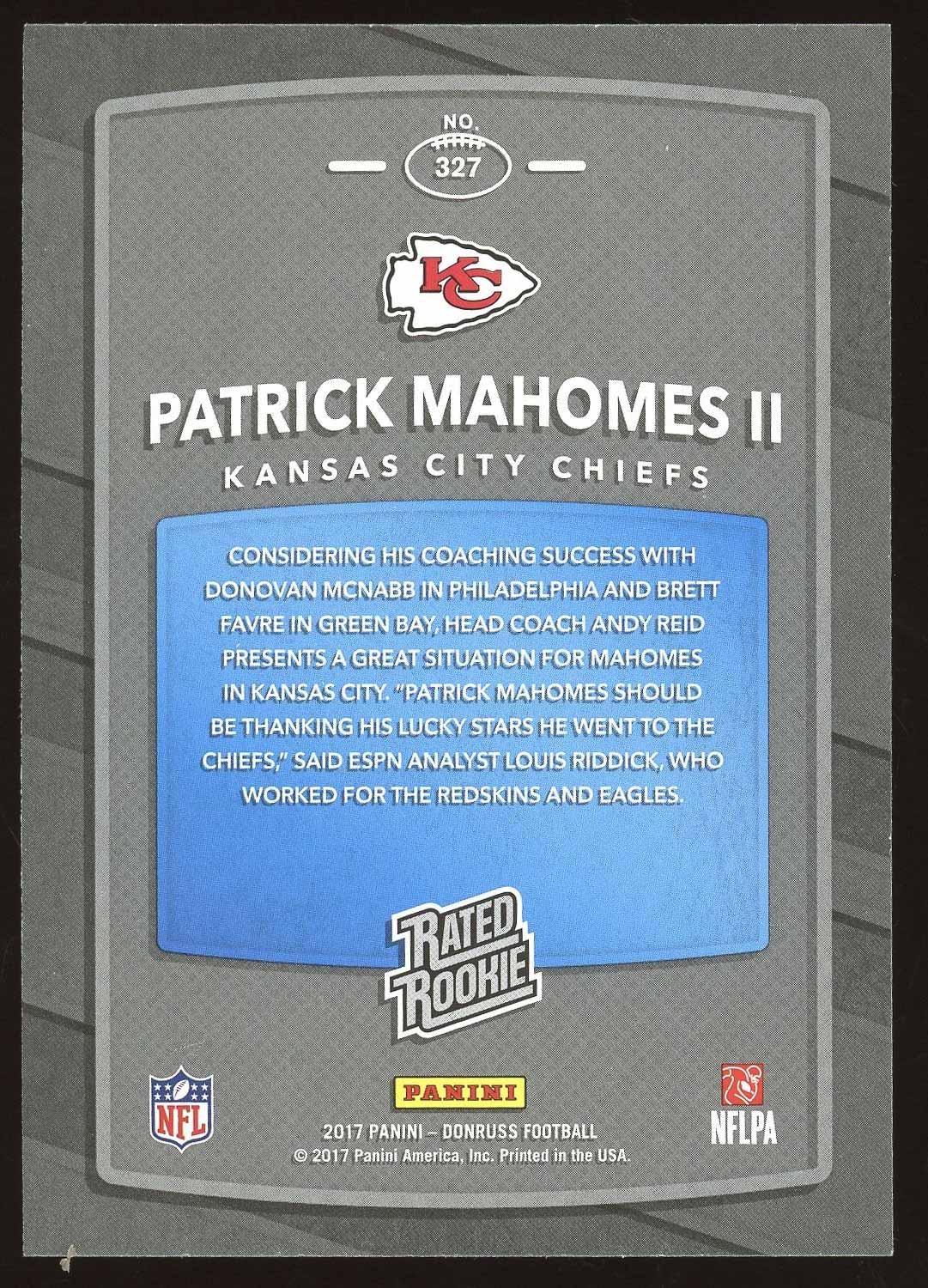Patrick Mahomes 2017 Donruss Rated Rookie Card #327. Please see pictures for details on the condition of this card.