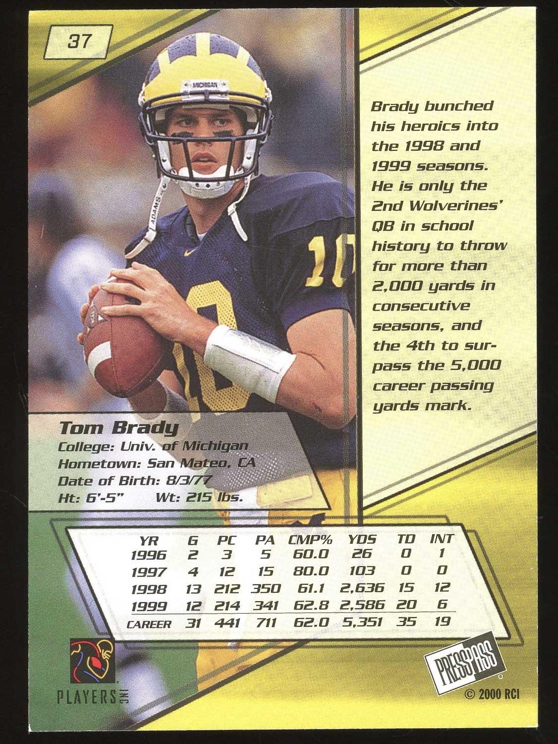 Tom Brady 2000 Press Pass Rookie Card #37. Please see pictures for details on the condition of this card.