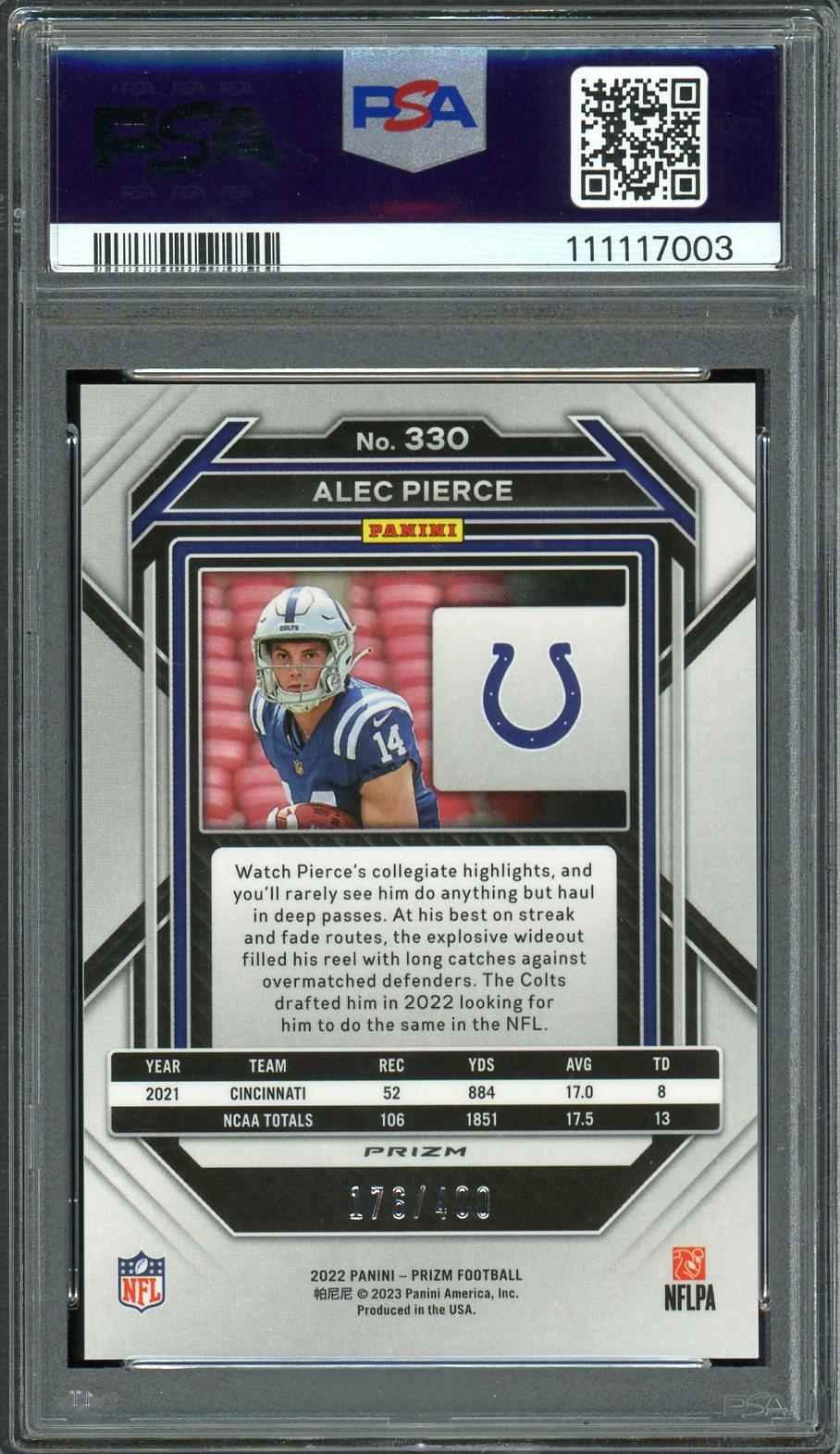 Alec Pierce 2022 Panini Prizm Pandora Rookie Card /400 PSA 9