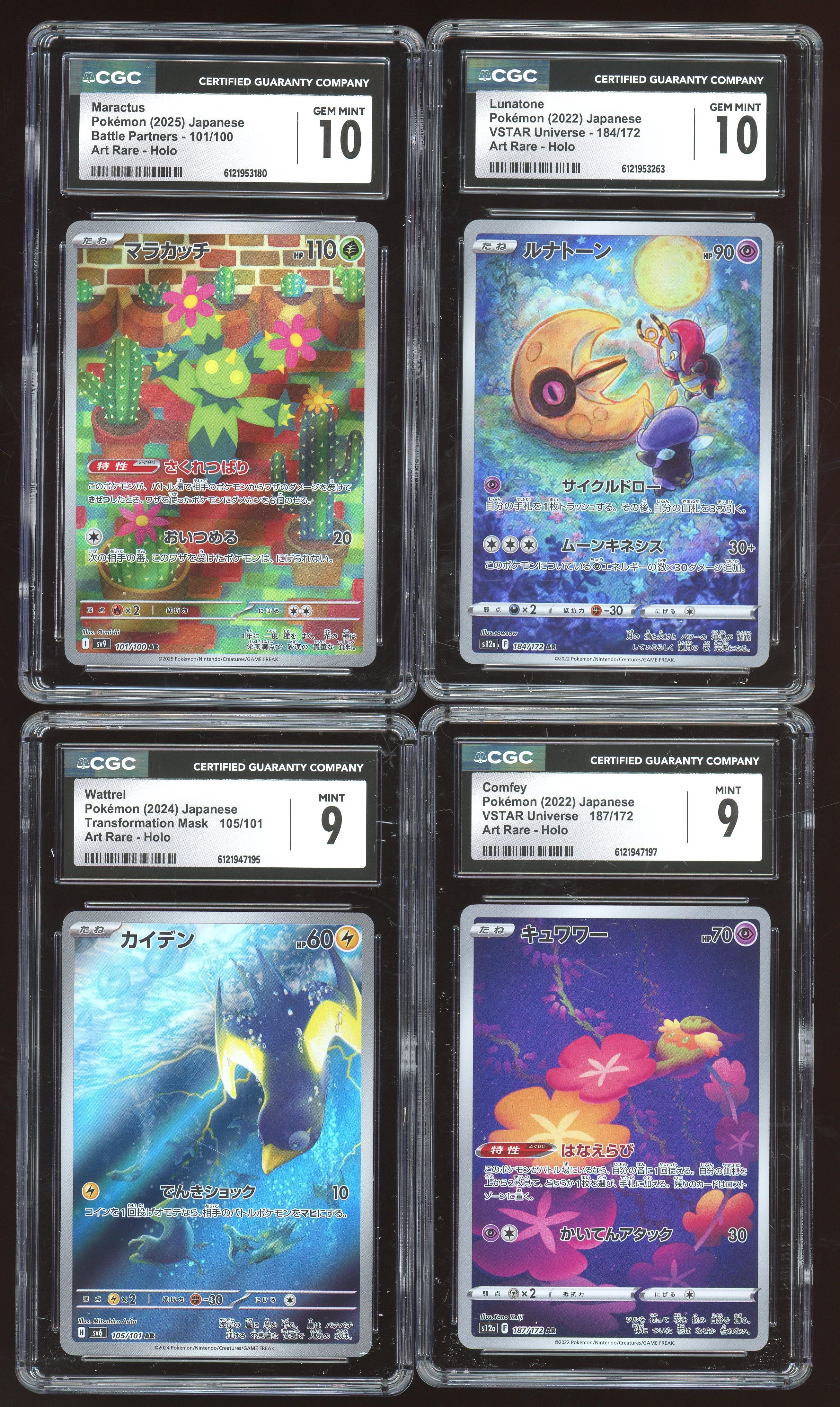 Pokemon TCG Card Mint or Better CGC Graded Card mystery pack is limited to 100 in the series and is an Auction of Champions exclusive. Each pack will contain 1 Pokemon CGC graded card with a grade of Mint 9 or better. Grades will be CGC Black Label 10, Gem Mint 10, Mint+ 9.5 or Mint 9. There is no guarantee as to which card you will receive as cards were packed randomly. You will receive one Pokemon card CGC graded mint 9 or better. A sample of what you may receive is pictured in images 2, 3 and 4. There are no returns on mystery products, all sales are final.