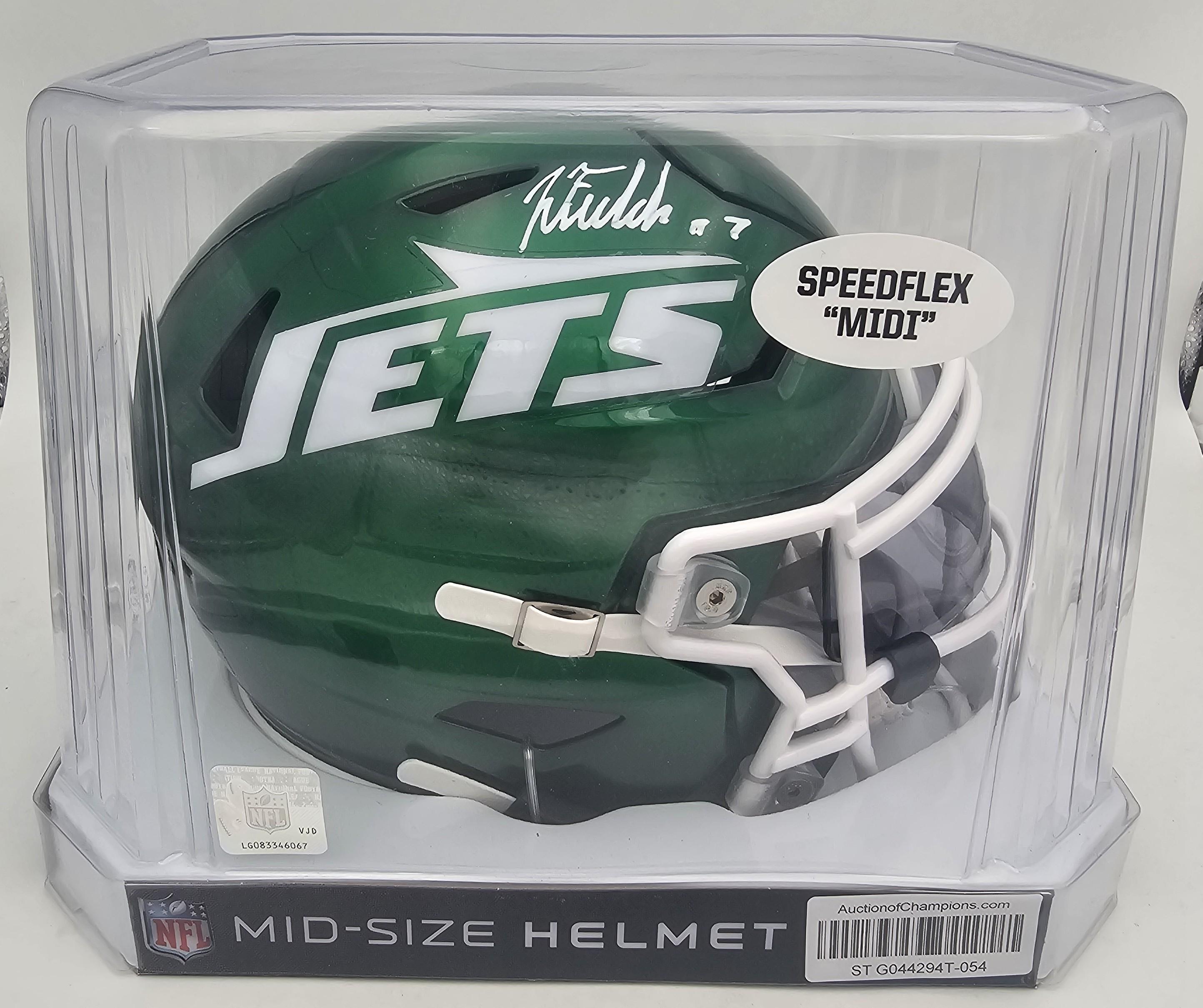 Justin Fields Signed New York Jets Speedflex Mid Size MIDI Helmet (Beckett Witness Certified)