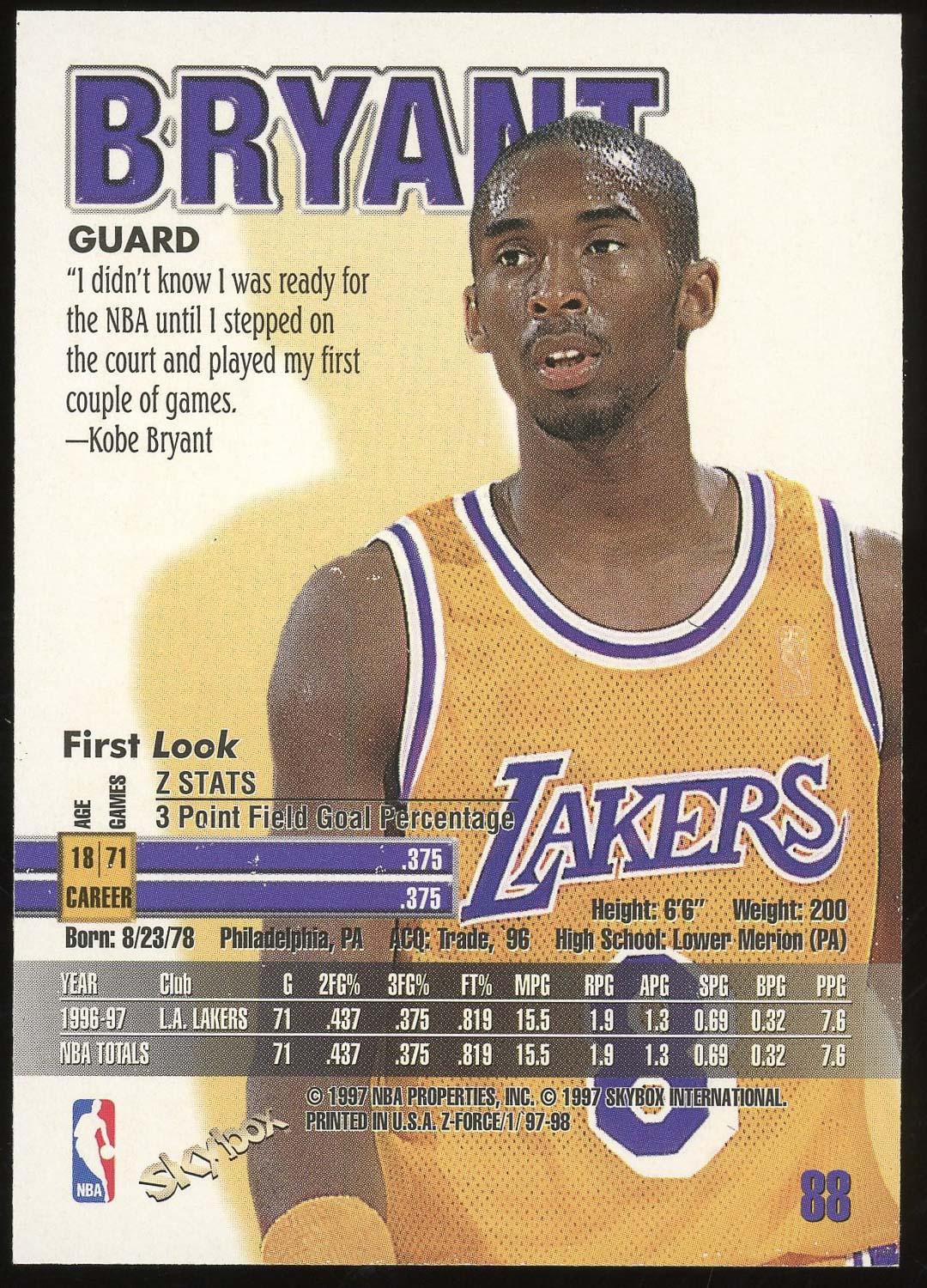 Kobe Bryant 1996 Skybox Z Force Rookie Card #88