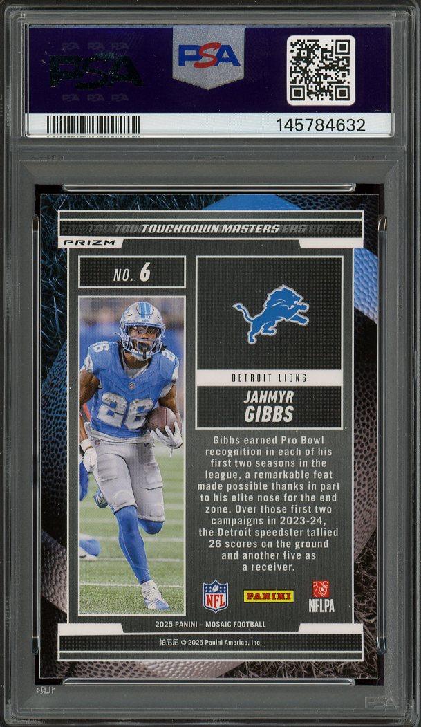 Jahmyr Gibbs 2025 Panini Mosaic Touchdown Masters Green Card #6 PSA 9