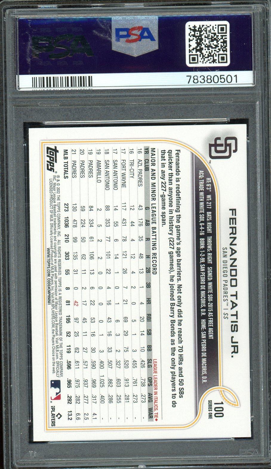 Fernando Tatis Jr. 2022 Topps SSP Card #100 PSA Gem Mint 10 POP 39!