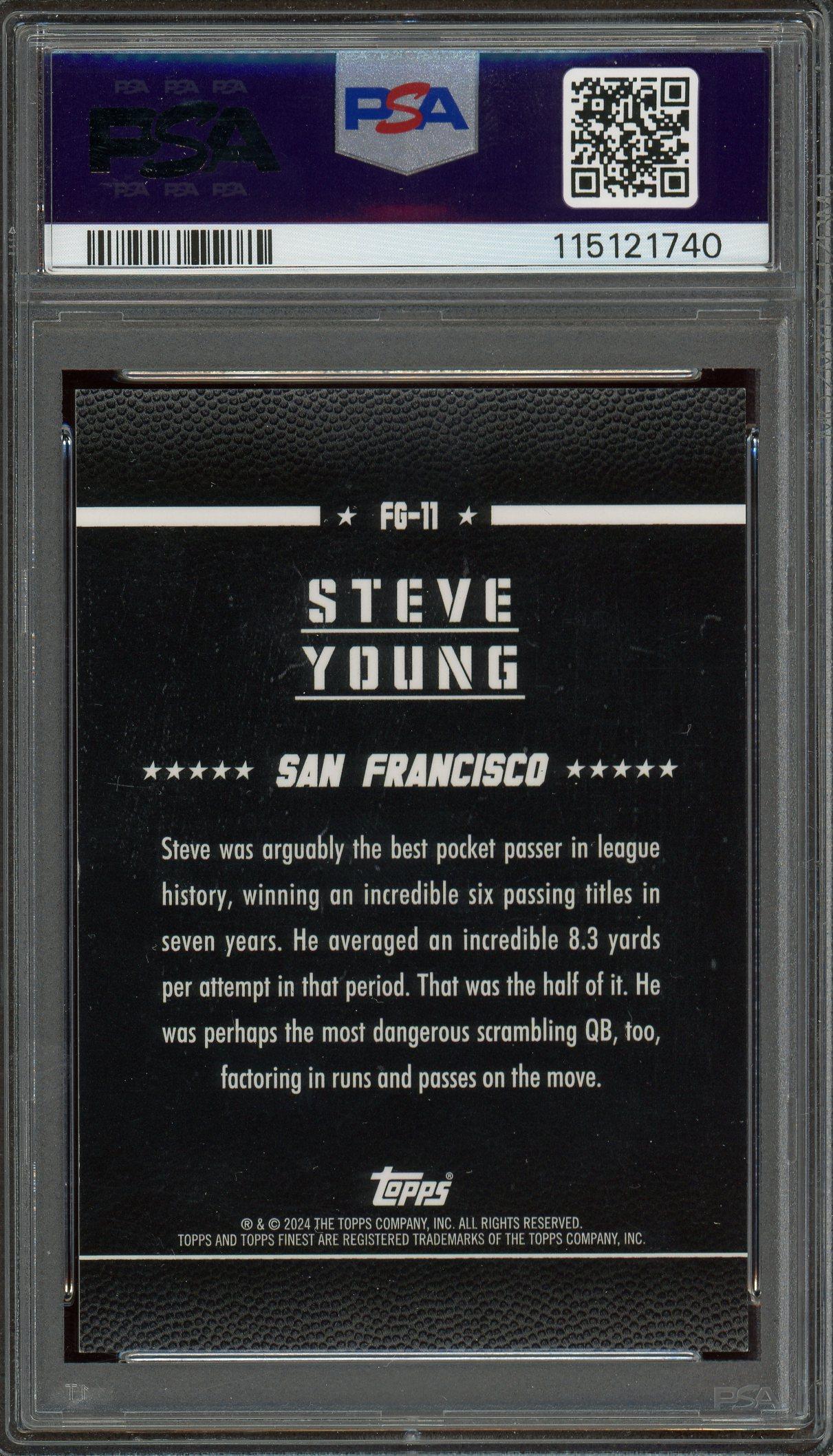 Steve Young 2024 Topps Finest Field Generals Gold Refractor Card /50 PSA 9: POP 1, None Higher!