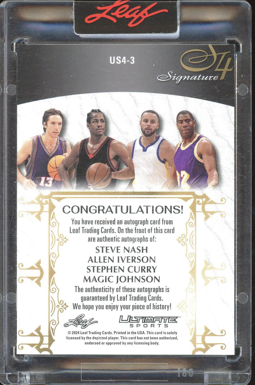 Steve Nash, Allen Iverson, Stephen Curry & Magic Johnson 2024 Leaf Ultimate Signature Auto Card /7. Please see pictures for details on the condition of this card.