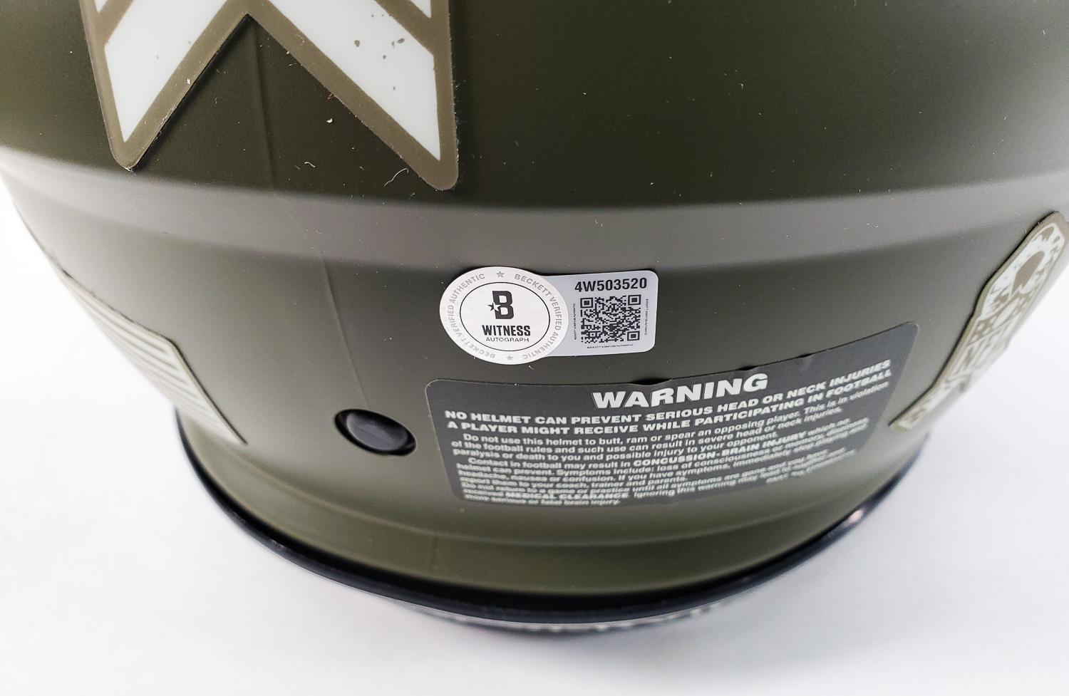 Authentic Helmet: Drew Brees "HOF 26" Signed Full Size Saints Salute To Service Speed Authentic Helmet (Beckett Witness Certified)