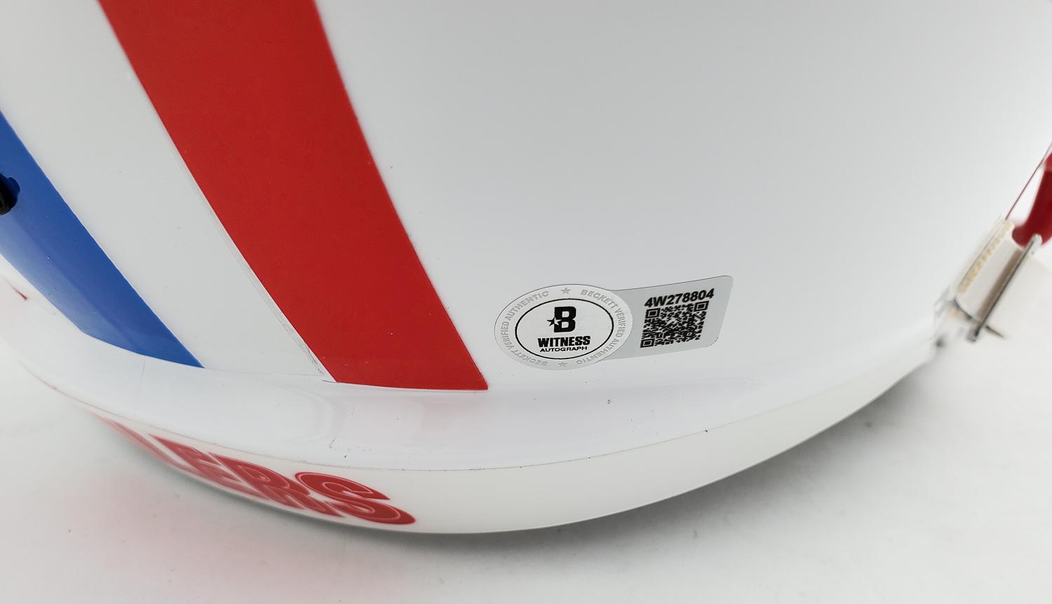 This autographed full size Riddell replica Speed helmet has been personally hand-signed by Warren Moon "HOF 06" of the Houston Oilers. This autograph is certified by Beckett Authentication Services (BAS) Witness Certification. That means that a Beckett representative was present when this item was signed. It comes with the numbered authentication hologram with a QR code that verifies the authentication on the Beckett website. Stock images are used for this listing. The item you will receive will be of equal quality to the one pictured. The signature location may vary slightly.