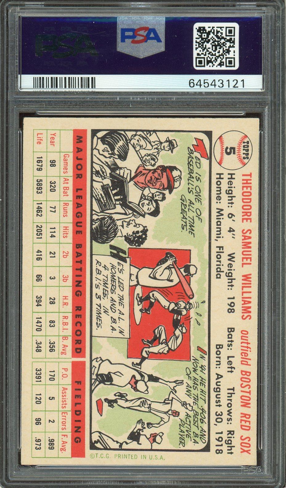 Ted Williams 1956 Topps White Back Card #5 PSA 6