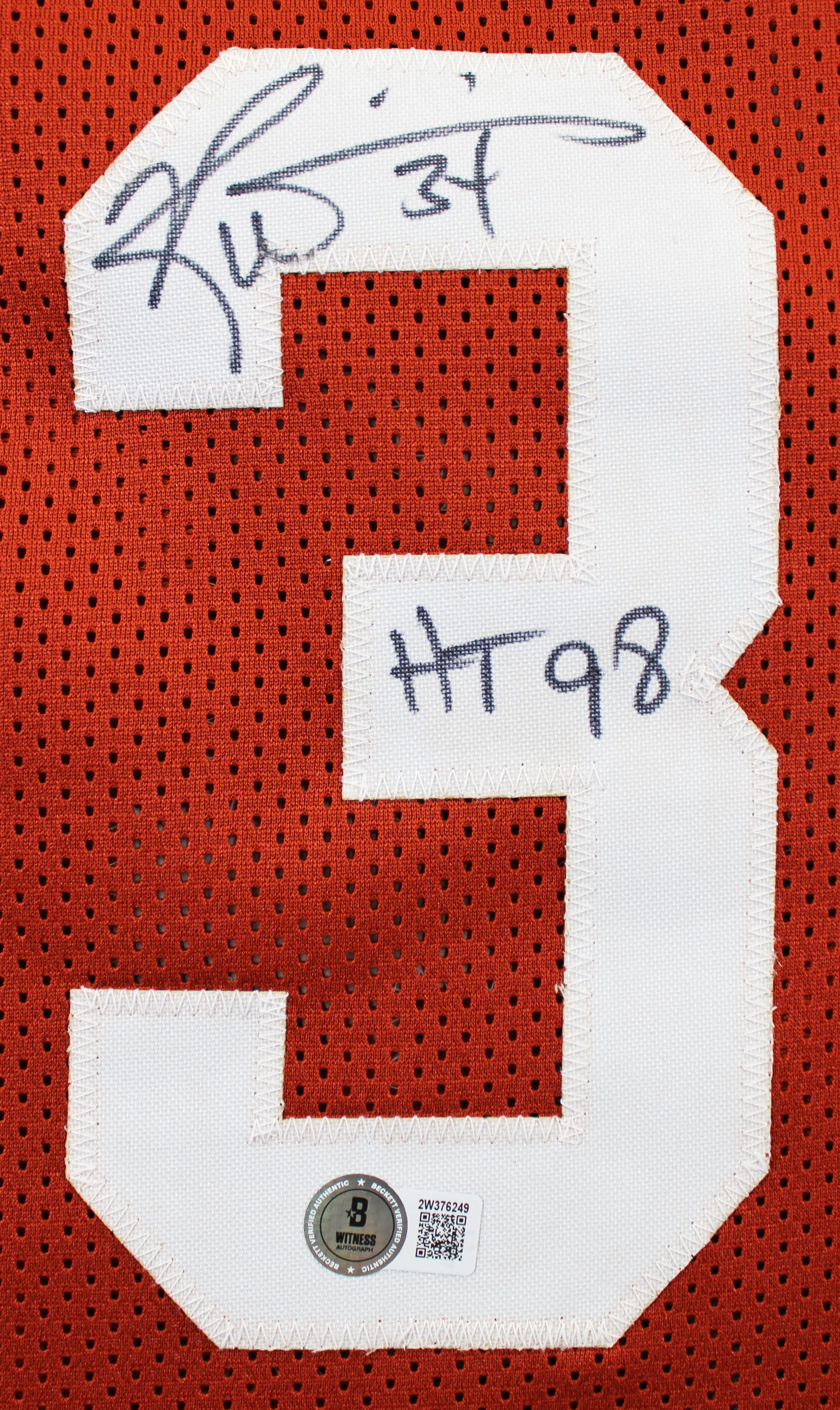 This autographed jersey has been personally hand-signed by Ricky Williams & Earl Campbell of the Texas Longhorns. This autograph is certified by Beckett Authentication Services (BAS) Witness Certification. That means that a Beckett representative was present when this item was signed. It comes with the numbered authentication hologram with a QR code that verifies the authentication on the Beckett website. Stock images are used for this listing. The item you will receive will be of equal quality to the one pictured. The signature location may vary slightly.