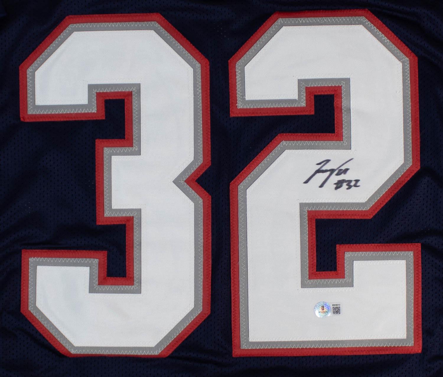 This autographed jersey has been personally hand-signed by TreVeyon Henderson of the New England Patriots. This autograph is certified by Beckett Authentication Services (BAS). It comes with the numbered authentication hologram with a QR code that verifies the authentication on the Beckett website.