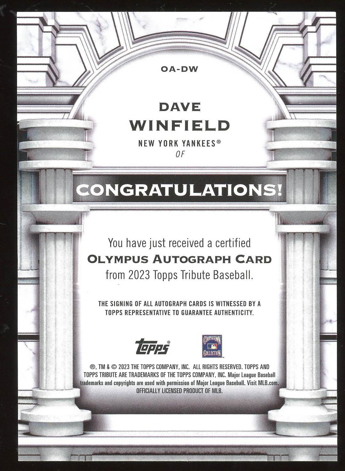 Dave Winfield 2023 Topps Tribute Auto Card /75. Please see pictures for details on the condition of this card.