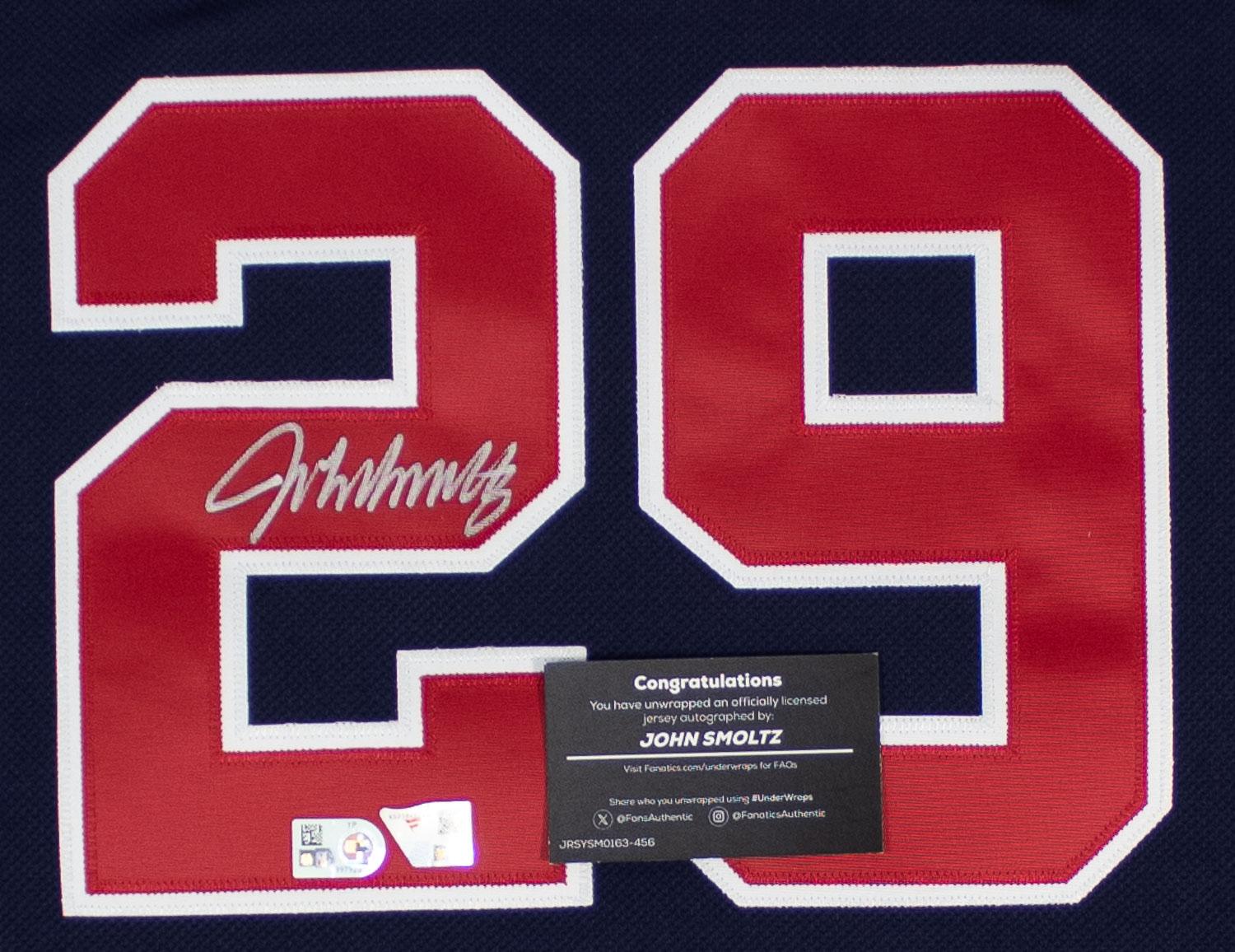 This autographed Mitchell & Ness jersey has been personally hand-signed by John Smoltz of the Atlanta Braves. This autograph is certified by Fanatics. It comes with the numbered hologram which can be verified on Fanatics.com. This autograph is also certified by Major League Baseball (MLB). It comes with the numbered hologram which can be verified on the MLB website, MLB.com.