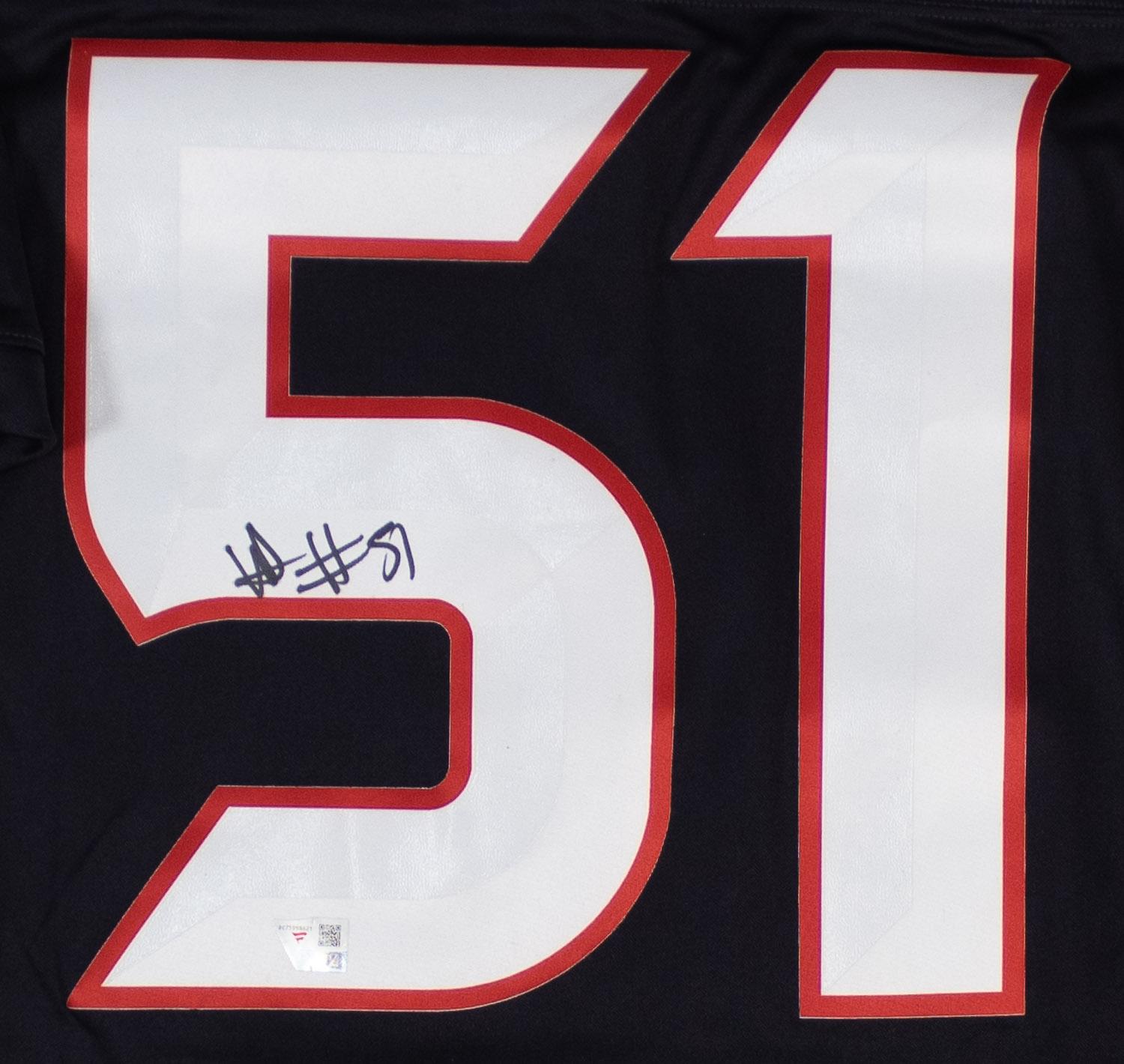This autographed Nike NFL Authentic Limited jersey has been personally hand-signed by Will Anderson Jr. of the Houston Texans. This autograph is certified by Fanatics. It comes with the numbered hologram which can be verified on Fanatics.com.
