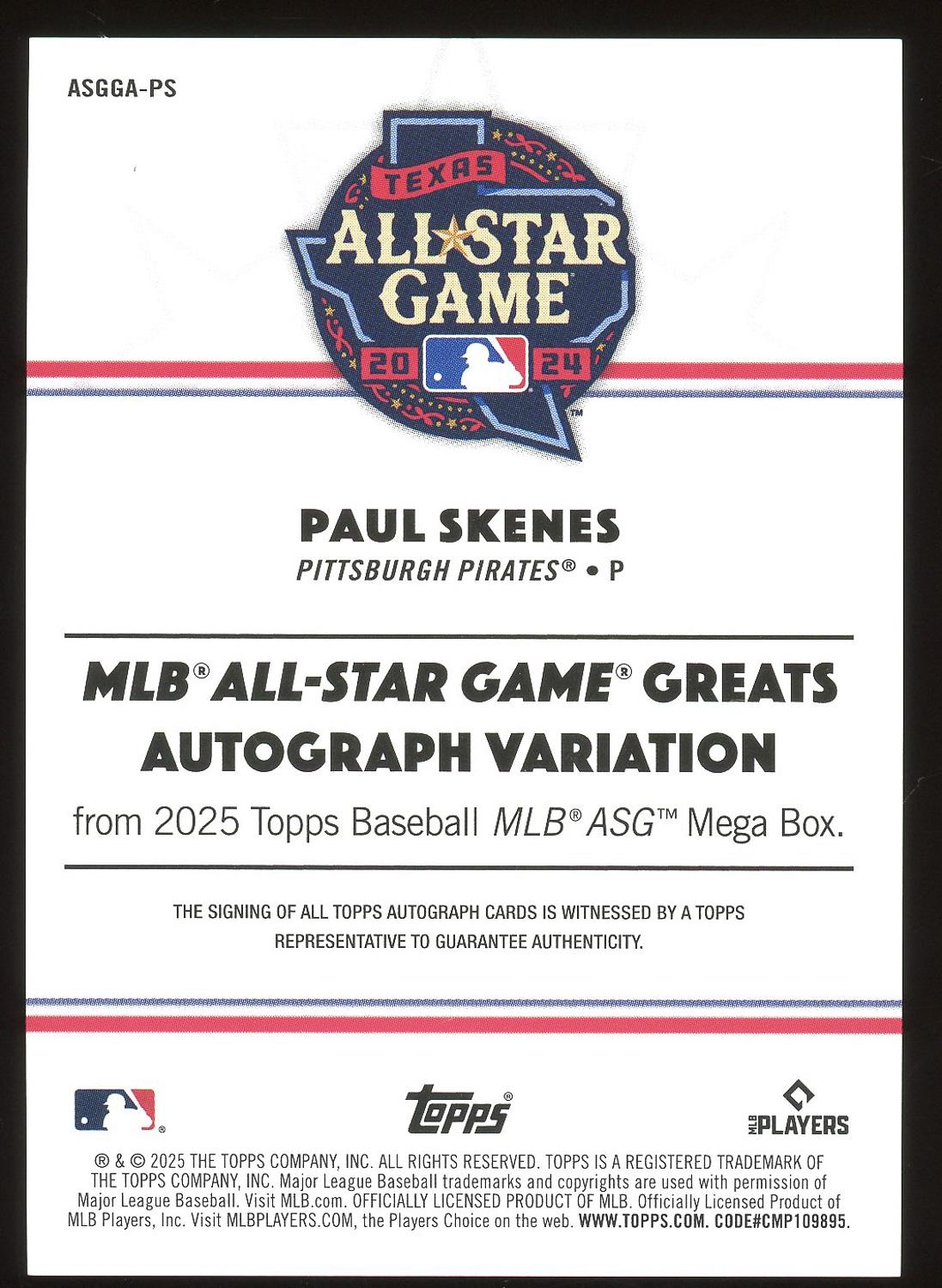 Paul Skenes 2025 Topps MLB All Star Game Greats Auto Card