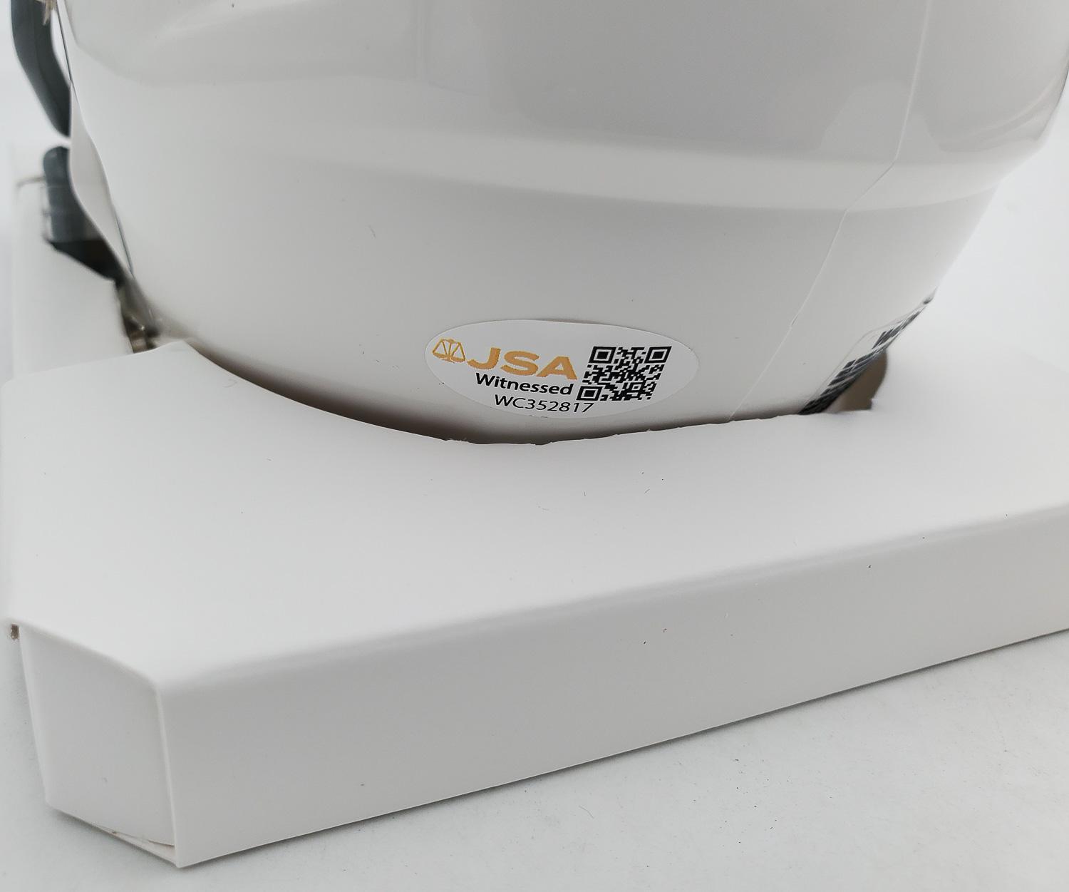 This autographed mini helmet has been personally hand-signed by LeGarrette Blount of the Philadelphia Eagles. This autograph is certified by James Spence Authentication's (JSA) Witnessed Protection Program. That means that a JSA representative was present when this item was signed. It comes with the numbered authentication hologram with a QR code that verifies the authentication on the JSA website.