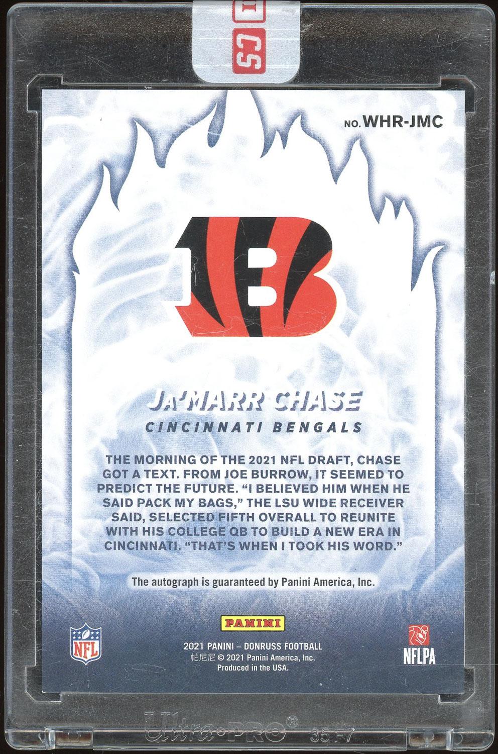 Ja'Marr Chase 2021 Donruss White Hot Rookies Auto Card /25. Please see pictures for details on the condition of this card.