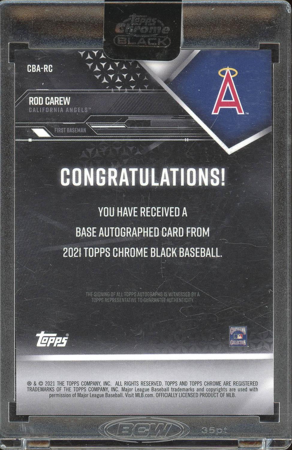 Rod Carew 2021 Topps Chrome Black Gold Auto Card /50. Please see pictures for details on the condition of this card.
