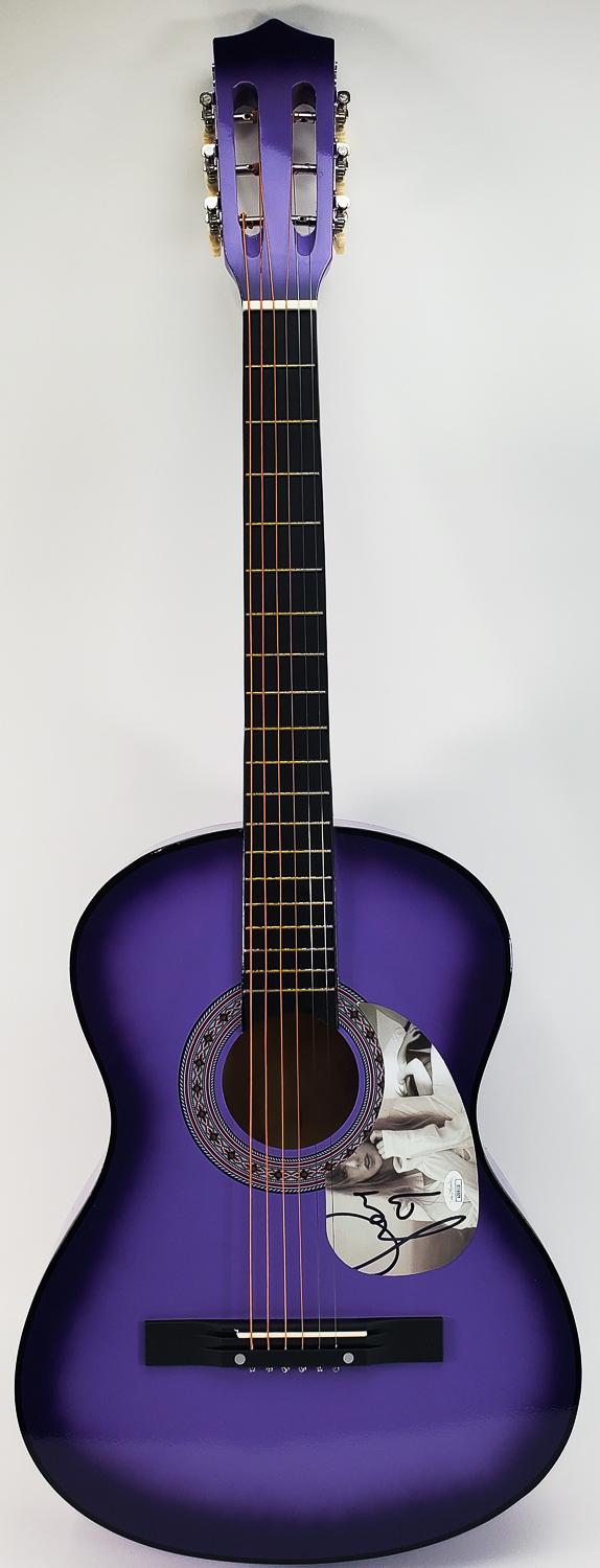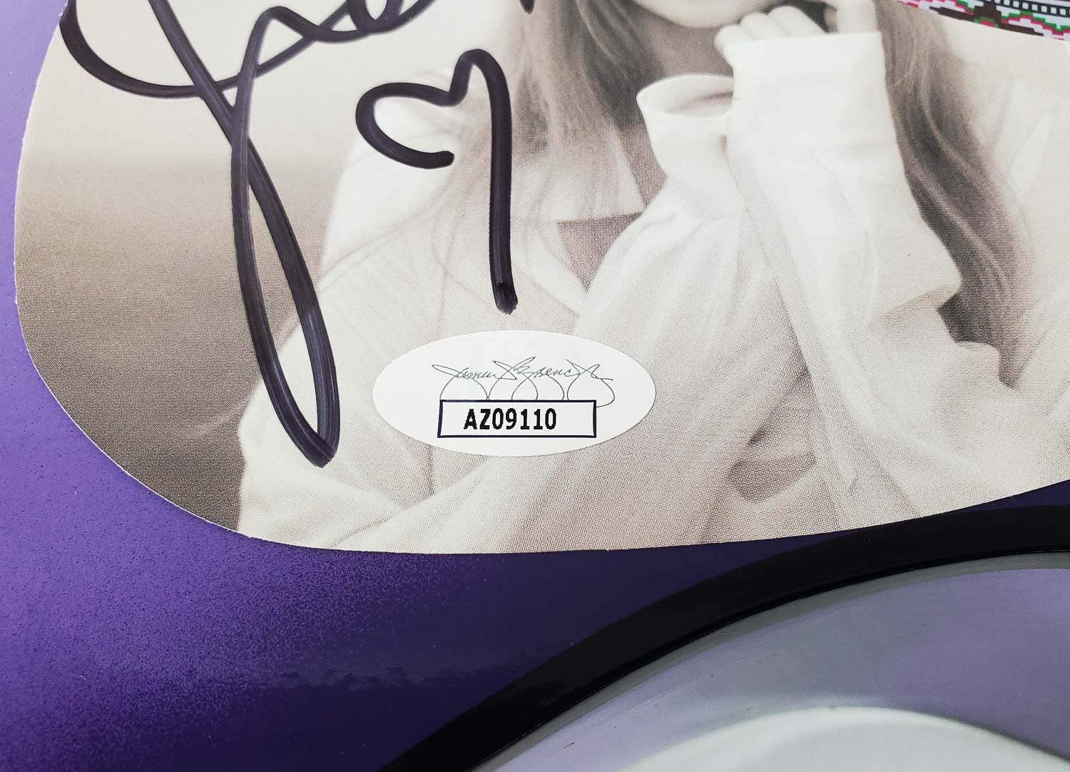 This autographed generic acoustic guitar has been personally hand-signed by Taylor Swift. This autograph is certified by James Spence Authentication (JSA). It comes with the numbered hologram for Authenticity. The signed pickguard is a cutout of a signed CD cover and part of another page glued together to make a pickguard shape.