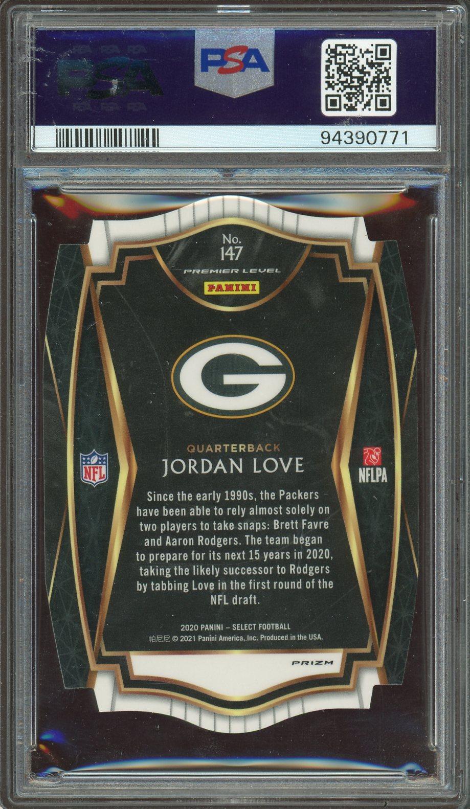 Jordan Love 2020 Panini Select Die Cut Neon Green Prizm Rookie Card #147 PSA Gem Mint 10!