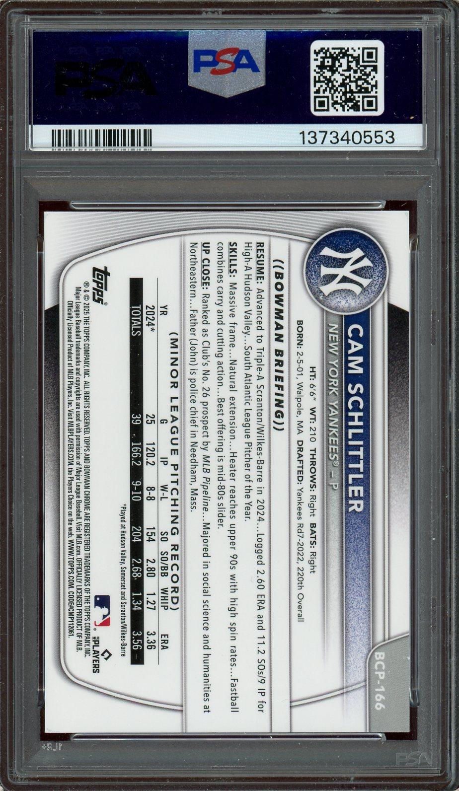 Cam Schittler 2025 Bowman Chrome Prospects 1st Bowman Geometric Refractor Card /499 PSA Gem Mint 10 POP 33!