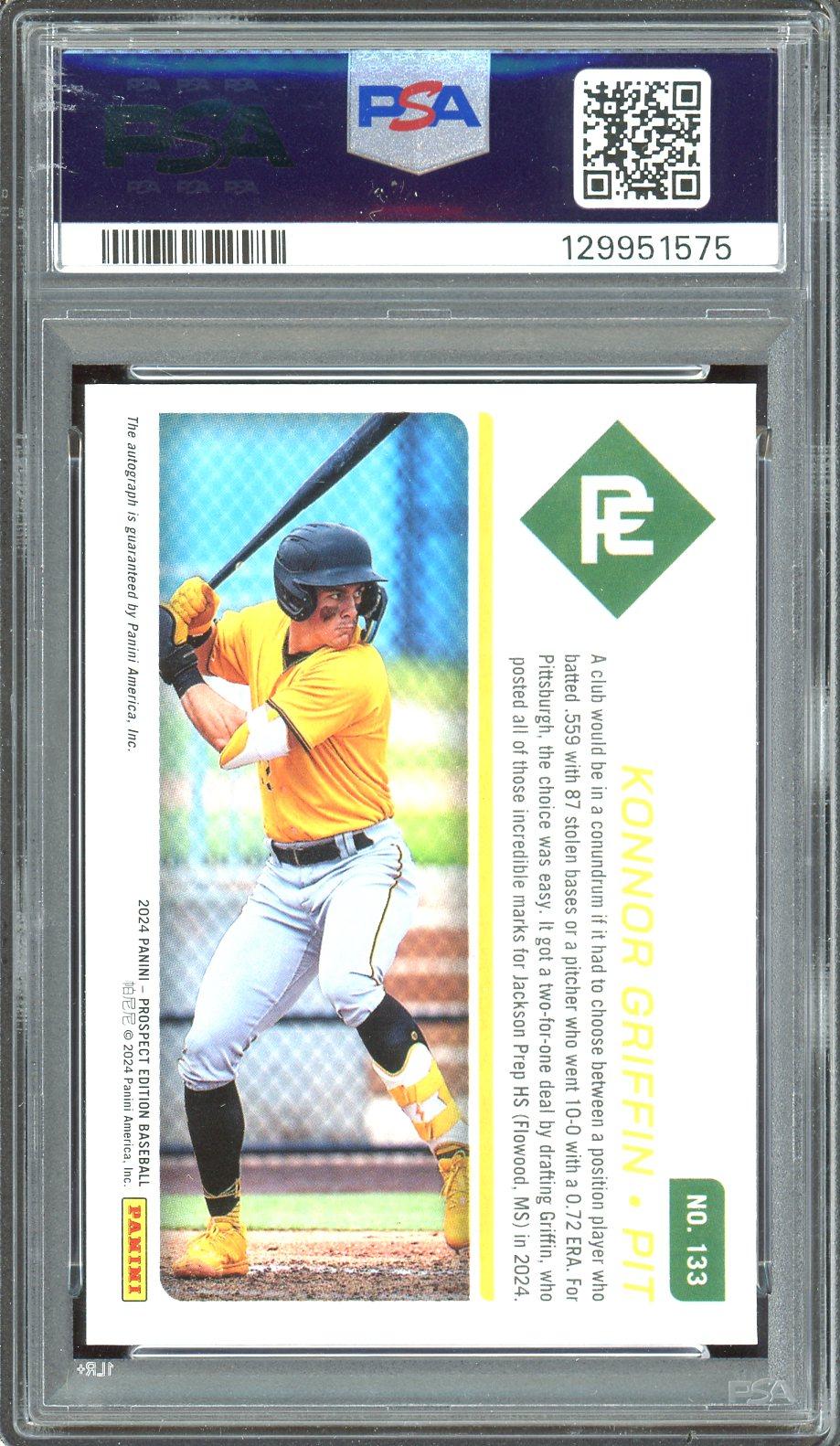 Konnor Griffin 2024 Prospect Edition Ticket Signature Auto Card PSA 9 Auto 8