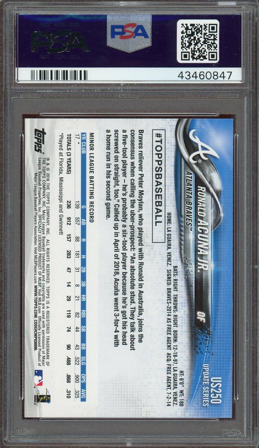 Ronald Acuna Jr. 2018 Topps Update At Bat in Blue Jersey Rookie Card PSA Gem Mint 10
