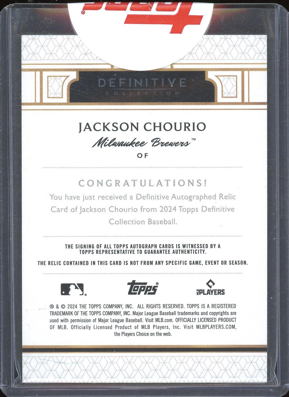 Jackson Chourio 2024 Topps Definitive Rookie Patch Auto Card /10