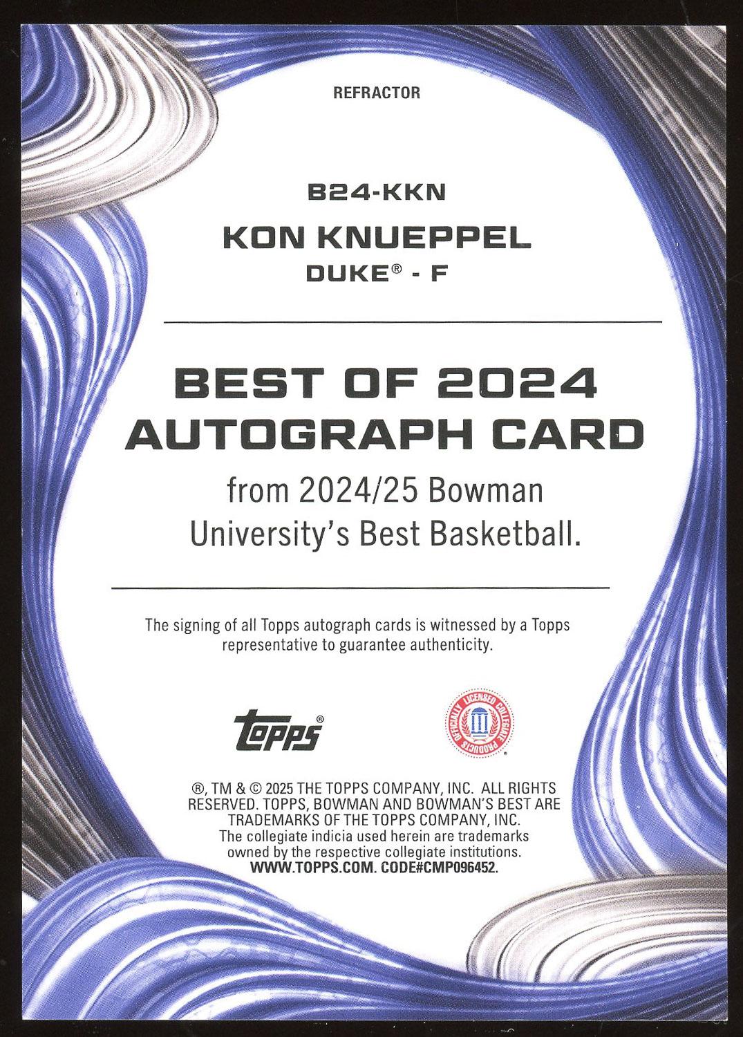 Kon Knueppel 2024 Bowman Best U Auto Card. Please see pictures for details on the condition of this card.