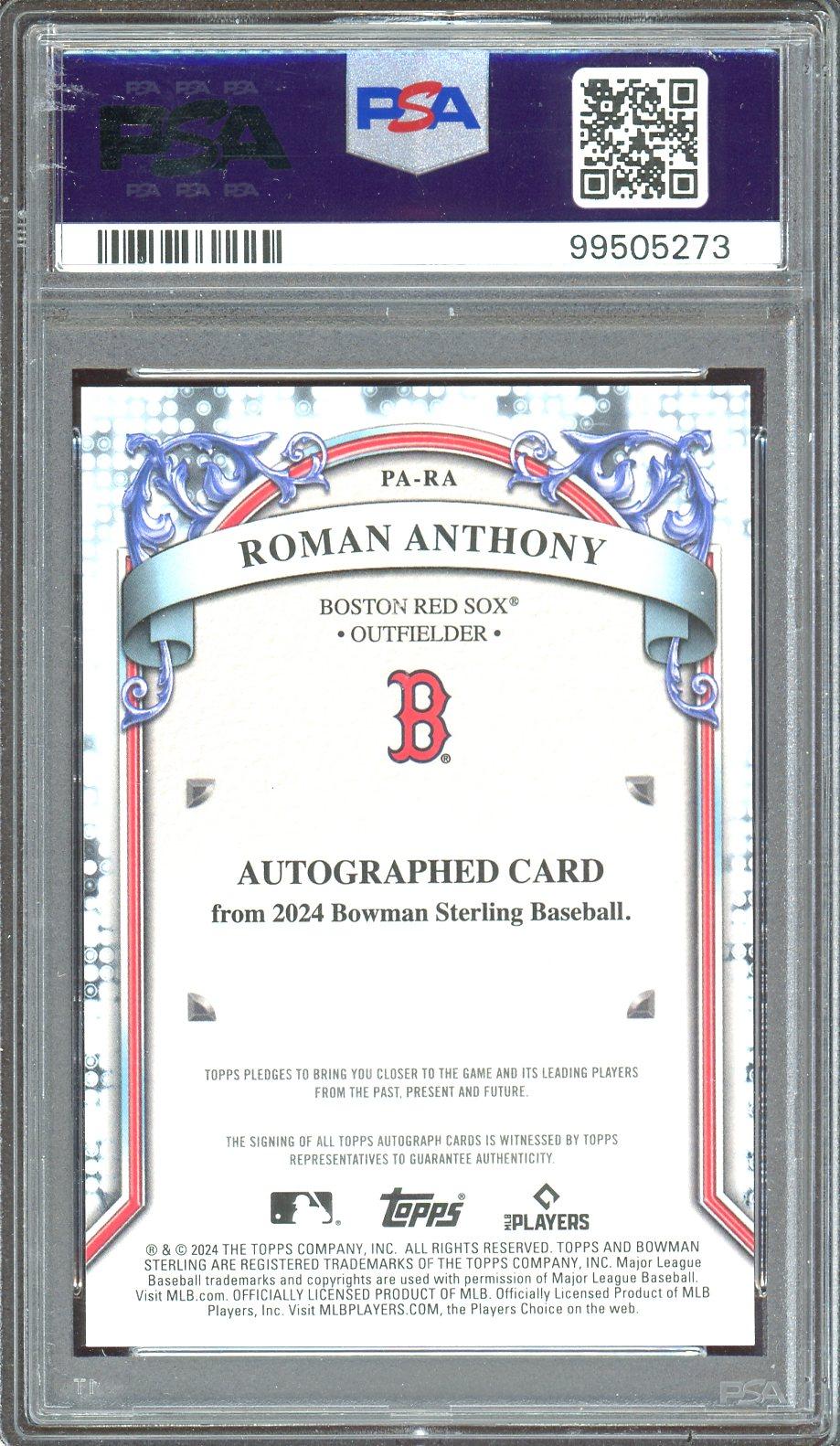 Roman Anthony 2024 Bowman Sterling Prospect Orange Refractor Auto Card /75 PSA Gem Mint 10 POP 24!