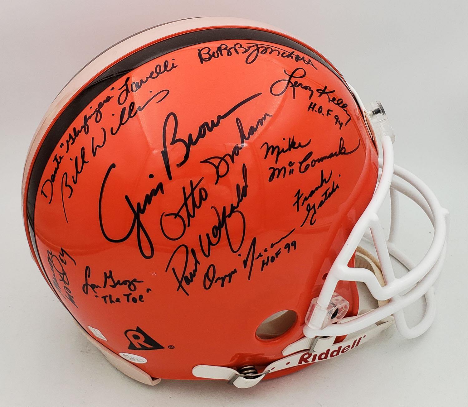 Authentic Helmet: Browns Hall of Famers (Jim Brown, Otto Graham & 10 Others) Signed Full Size Authentic Helmet (JSA LOA)
